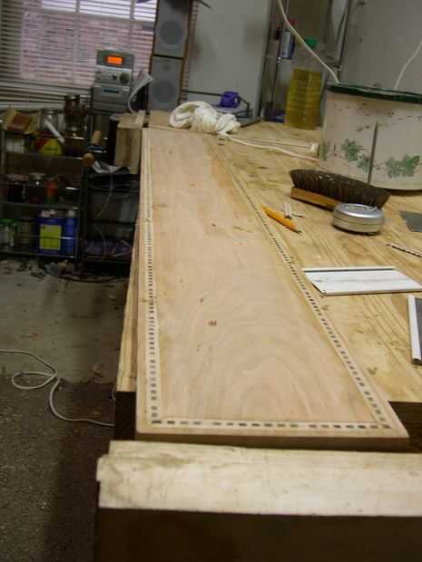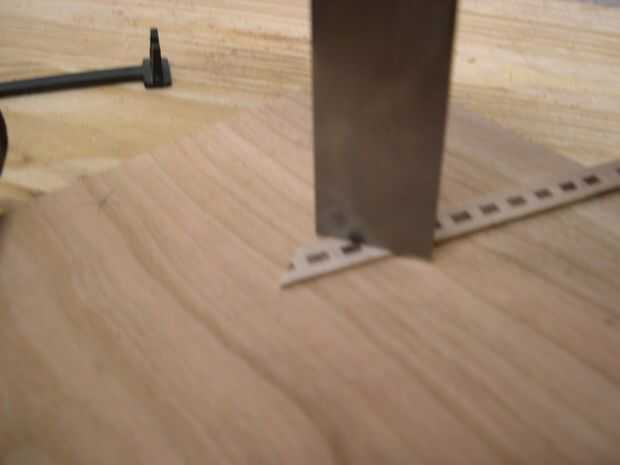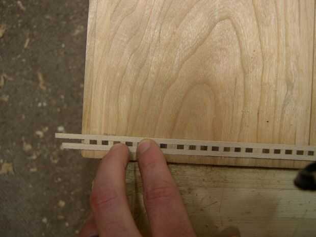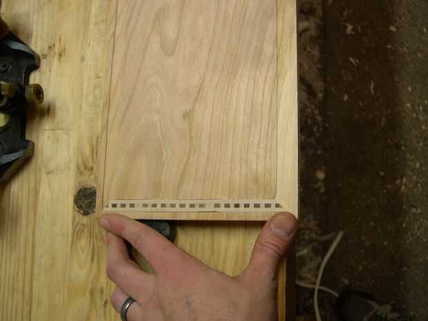 He instalado las bandas en un borde del tablero y mi camino alrededor de la frontera con ingletes para unir los trozos. Para saber donde debo cortar los ingletes en los extremos del tablero, puso una franja de bandas en la ranura y marcado con un fino, agudo lápiz donde tope contra el interior surco del borde adyacente. Usando mi cincel, luego puse su esquina (con el bisel hacia la basura) en la marca del lápiz y lentamente girar el cincel hacia fuera hasta que vi una sharp 90 grados girar detrás de cincel. Luego corte los ingletes con un movimiento oscilante, tomando mi tiempo para cortar a través de él completamente.