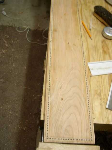 Las bandas que usa era restos de mi proyecto de mesa de comedor Federal. Este es bastante sencillo de hacer y consiste en alternar las tiras de nogal y sicómoro que aserrado y encolada entre dos piezas estrechas de sicómoro. Si quiere ahorrar tiempo en el proyecto, o no está seguro de cómo hacer las bandas, fácilmente puede comprar algunos de Woodcraft (http://www.woodcraft.com/) o de Lee Valley (http://www.leevalley.com/).