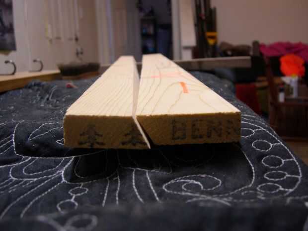 Para la instalación, elegí una cala francés ya que es muy fuerte y se esconde de la vista. Hice la Cala por cortar un bisel de 30 grados en un pedazo de pino blanco del este. La parte superior de la cuña en el lado izquierdo de la fotografía y se atornilla en la parte posterior de la rejilla de la olla. Para asegurarse de que la Cala era nivel, he marcado aproximadamente 2 pulgadas hacia abajo desde la parte superior de la rejilla de la olla y cuidadosamente alineados de la Cala con esa marca. De esta manera la Cala está completamente nivelado y paralelo al bastidor de la olla.