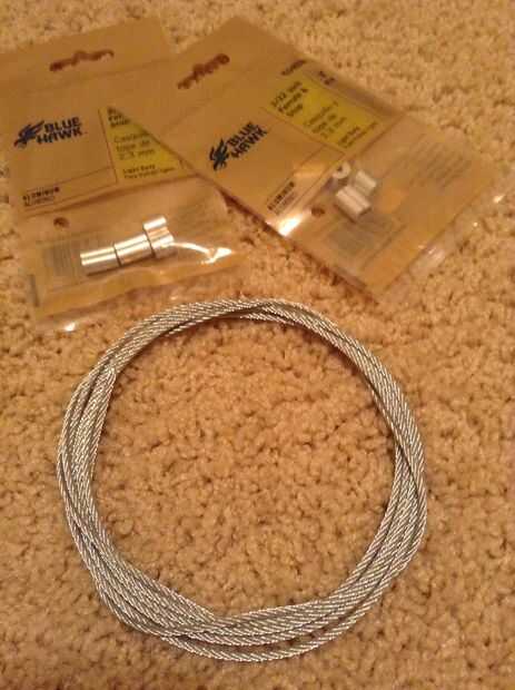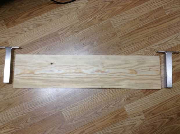 Este estante se realiza mediante soportes de ikea y un tablero de 7" que encontré en lowes. (No pude usar el tablero de ikea porque era tablero de partícula y no podía cortarse) También se necesita un fina 6' cable y una férula y parada, pero como yo podría simplemente utilizar un tornillo y una arandela.