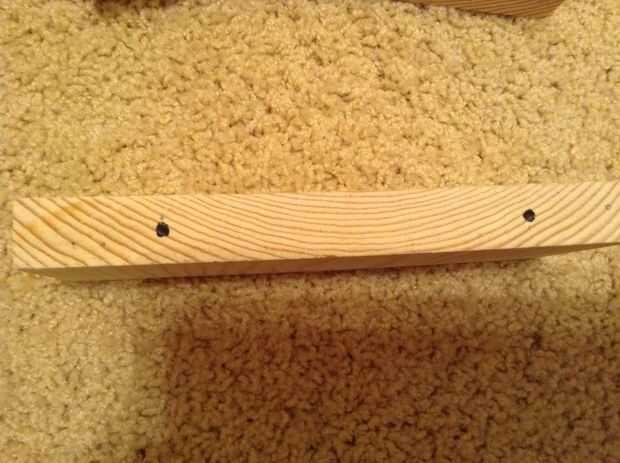 Ahora usando una sierra circular, hacer los 15 cortes que tan precisa como sea posible. Ahora le hacen las marcas para los agujeros. Éstos tienen que ser muy precisos para hacer una marca en ambos lados de la pieza. Hice mis 2" del extremo. Hará una gran diferencia si tienes un taladro, pero yo no y tuve que usar un taladro, por lo que no resulta perfectas.