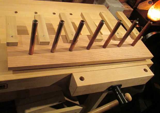 Este estante de bufanda/sombrero/manopla es nuestro primer proyecto juntos en la tienda.