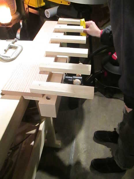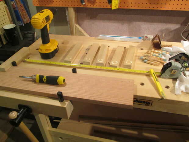 Hemos entonces previamente perforado los agujeros en las clavijas y donde iría en el arce, añade pegamento y condujo algunas acero templado agradable suelo clavos a través de todo. Realmente me gustan por su aspecto decorativo.