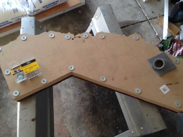 Utilicé parte 2 epoxy y luego fue alrededor de los bordes con un tamaño tornillo con arandela de la parte posterior de la pieza. Estas capas no se desintegraría.