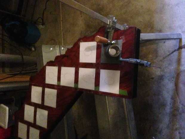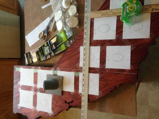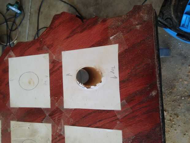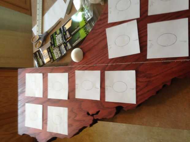 Me escogió una línea de centro y comenzó uniformemente espaciado hacia fuera recortes cuadrados que coincidió con mi plantilla. Grabado hacia abajo y me taladró los doce agujeros.