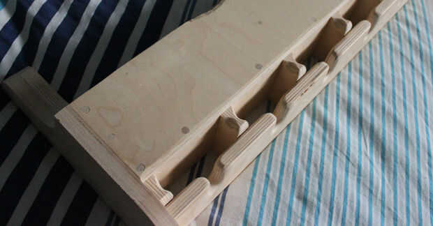 Nada dice de botellero elegante y sofisticado como enclavado sus botellas de vino en este estante de goma vino!Fuentes:4 cantidad 1-3/4 "x 36" clavija cuadrada madera6 qty 5/8 "x 36" redondo pasadorgomas de 120 qty #33 (3-1/2 "x 1