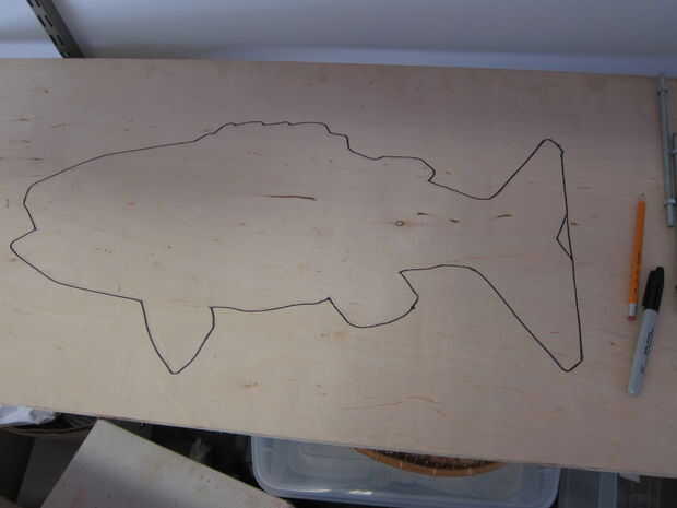 2. trace el cortador del agujero interior de diseño. Fila 3 en el pescado. Pero si tienes un estante más grande en mente, puedes ser creativo y escalonar los agujeros, hacer patrones, etc..
