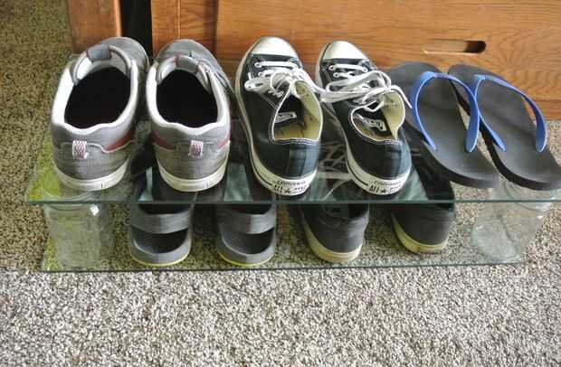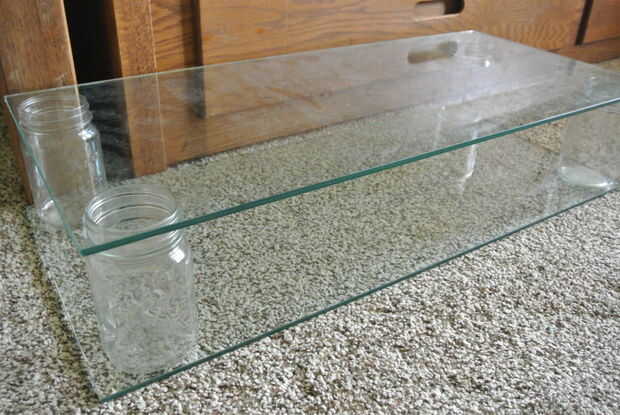 Sé que ya hay un montón de Instructables en la fabricación de estantes del zapato, pero quería uno que podía hacer rápidamente con los materiales en mano. Todo tomó era dos estantes de vidrio sobrantes de una remodelación, con cuatro tarros de mason. Si tienes los zapatos más que hacer, sólo puede utilizar 8 frascos y otra pieza de vidrio o 12 tarros etc.. Probablemente tomó menos de tres minutos, pero es muy efectivo. Usted también podría experimentar con otros materiales, como madera contrachapada en lugar de estantes de vidrio o latas de aluminio en lugar de tarros de masón, sólo usé lo hice porque es lo que tenía en mano. De todas formas, espero les guste y si no, voten por mí en el desafío de pies!