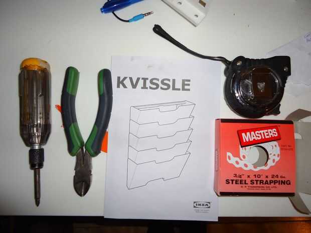 El núcleo de este proyecto es un conjunto de ranuras de carpeta Kvissle (para el calzado) y acero fleje (para mantenerla todos juntos).