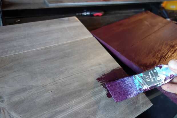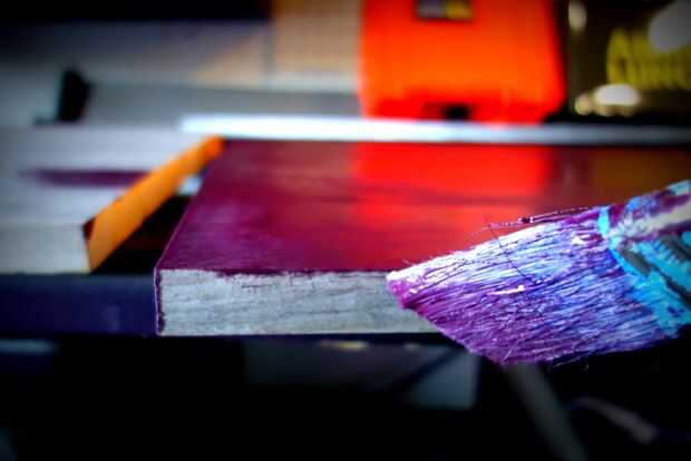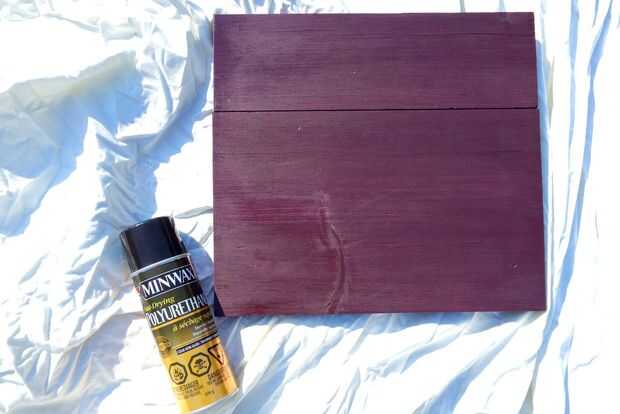 Un lijado rápido ayudará a la mancha y barniz a bien adherirse a la madera. Siga las instrucciones para su mancha y barniz. Aplique abundantemente y volver sobre la madera con movimientos largos para asegurar un acabado liso. Compruebe los bordes de goteo. He utilizado un barniz de spray que tenía a la mano; Esto hace que la aplicación sea muy fácil, pero es probablemente más caros y menos eficaces en la protección de su madera.