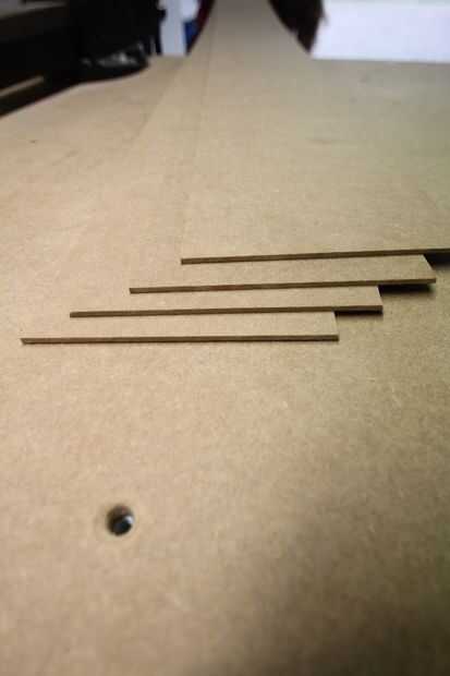-4mm MDF o madera contrachapada (tenía el rip de la ferretería la hoja hasta tiras de 15 cm por 240 cm.