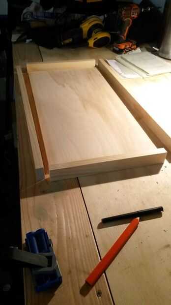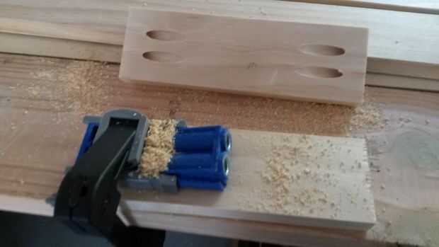 En cuanto a la perforación; Compré una nueva herramienta, un jig de agujero de bolsillo, para acelerar la construcción del escritorio y no puedo parecen dejar de usarlo. Estaba tan impresionado con el precio de la pieza de plástico que quería seguir jugando con él. Aprender algunas lecciones en el camino. La última foto es lo que pasa cuando no sujete la plantilla lo suficientemente apretada. Por suerte ese error fue ocultado por otra improvisación. Puede utilizar cualquier método que usted es cómodo con. Sólo estaba usando un nuevo juguete para usar un juguete nuevo.
