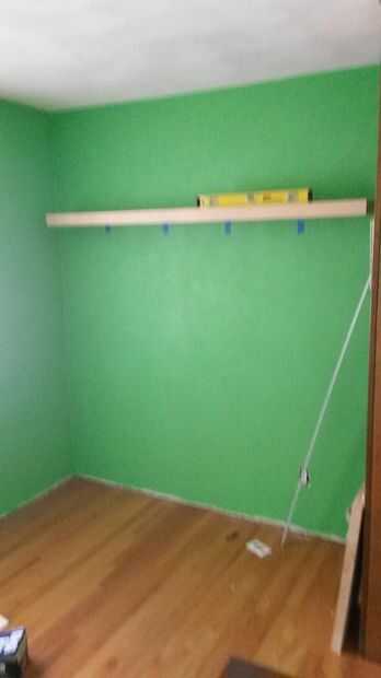 Consigue ahora un amigo, cónyuge o cualquiera puede sobornar con una cerveza a ayudarle. Una 2ª serie de manos son invaluables en este punto. Ambos de necesita sostener la plataforma flotante en el lugar correcto como se coloque el primer tornillo. Asegúrese de que es la distancia correcta de la pared y nivel a la altura deseada. No tiene que ser perfecto cuando usted conduce el primer tornillo, pero cuanto más cerca estás, más fácil todo lo demás será. Después de 1 tornillo en, sólo una persona debería exigirse para sostener la plataforma. Esto permite que la persona 2 Compruebe el nivel de elevación y los otros tornillos a los montantes. Básicamente se hace el trabajo. Añadir el colgante organizador estante a la pista y empezar a limpiar.