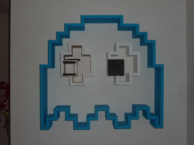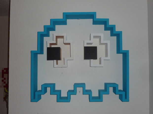 ¡ Bienvenido plataforma aficionados y entusiastas de PacMan! Este instructable le mostrará cómo construir e instalar una plataforma flotante en forma al igual que uno de los fantasmas del juego. La plataforma que se muestra a continuación es de aproximadamente 30 x 30" total, con cuerpo y ojos flotan libremente. Se pega hacia fuera cerca de 5.5", que es sólo un poco más ancha que una caja de DVD. Los ojos también ocultan un compartimiento oculto (ver foto #2).