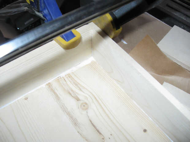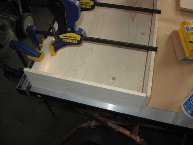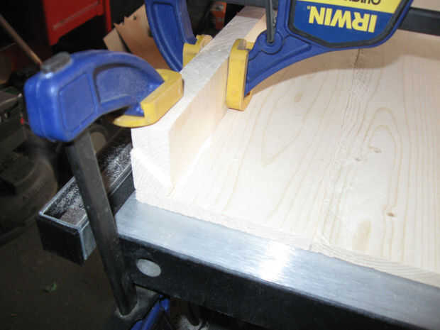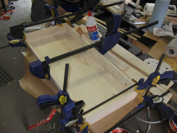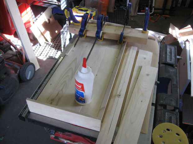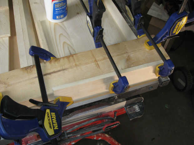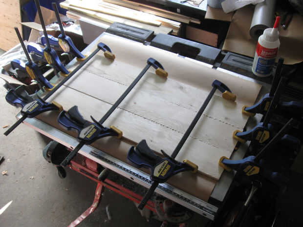 En el borde ancho restante, pegamento y la abrazadera un 25 pulgadas por tira de 2 3/4 de pulgada Asegúrese de superponer los extremos de 10 1/2 pulgadas.