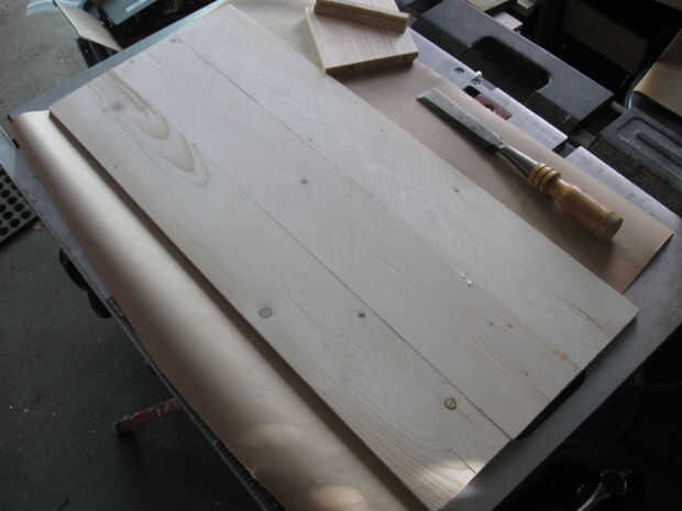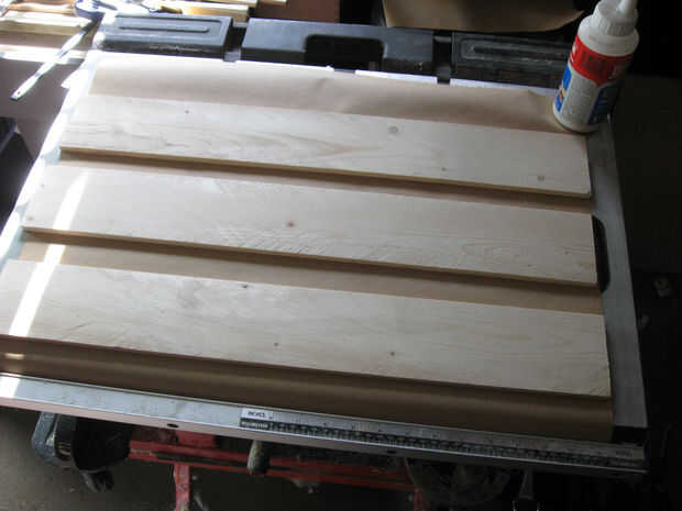 Comenzar pegando 3 de 24 pulgadas tiras juntos para crear una hoja de ancho fina. Sujete todas las piezas sobre una superficie plana y esperar a que el pegamento se seque.
