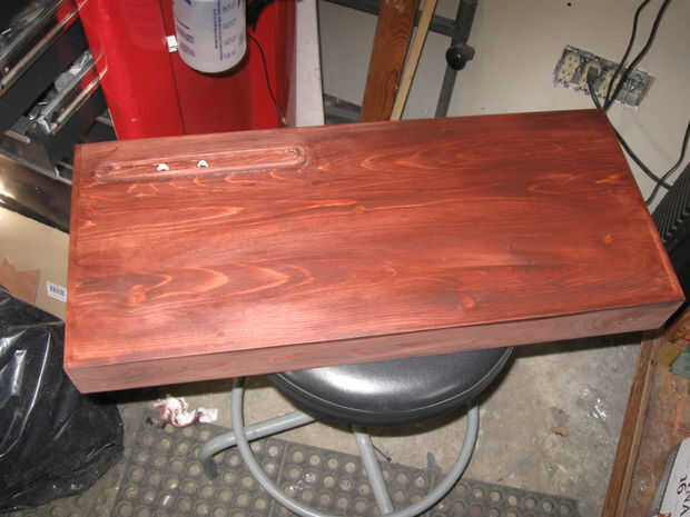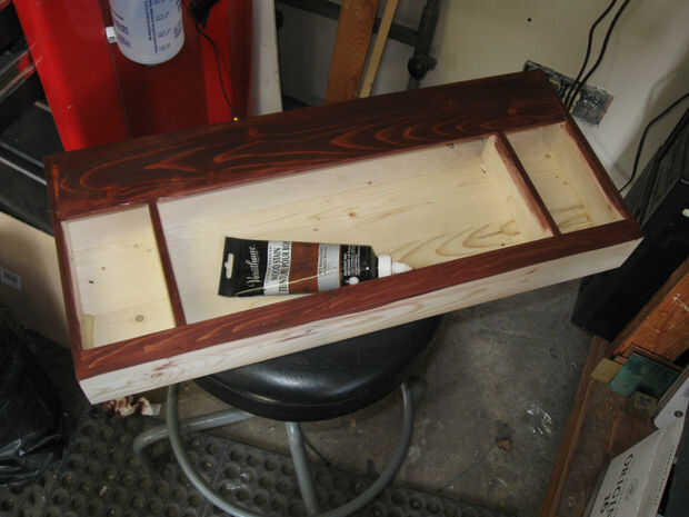 Este cuadro ha inglete carpintería de la esquina que fácilmente puede ser hecha en el Hanon y reforzado con las tiras. El interior tiene una bandeja que se desplaza para revelar una bandeja inferior. Cuando las bandejas están levantadas, se revela un