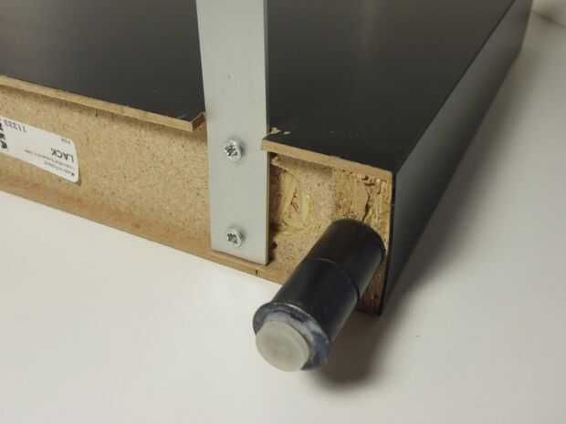 Agarra los espaciadores de plástico y tornillo para la plataforma que permite aparte de la pared y también recto, coloque unos pies de goma para no rayar la pared, y se hace.