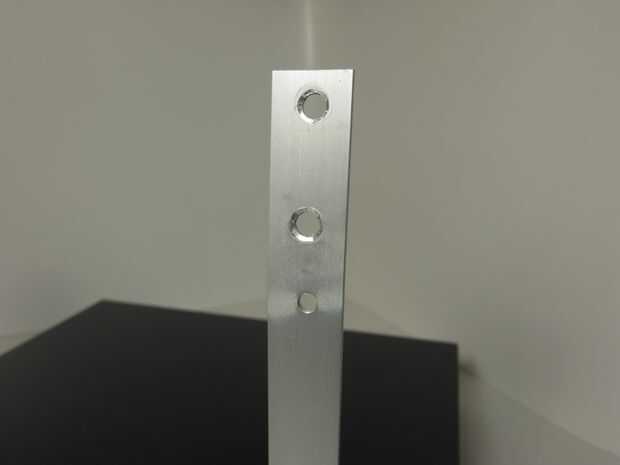 Haga dos agujeros en la barra de aluminio por lo que se puede atornillar a la parte trasera de la TV con los tornillos originales del soporte base.