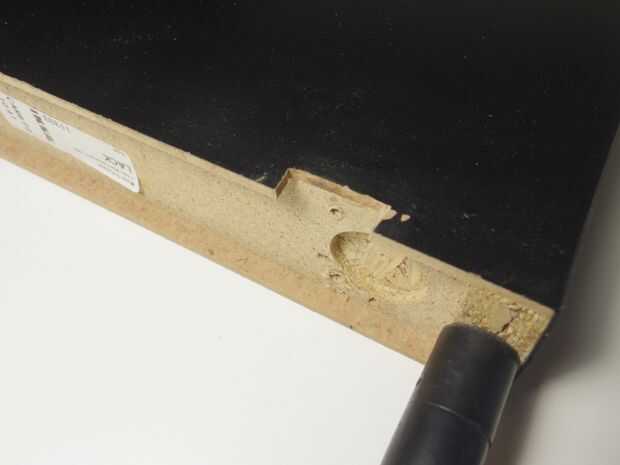 En el estante hacer cuatro agujeros en la parte posterior que permite establecer la barra de aluminio, en mi caso tuve que hacer un corte para que el soporte sea recto a la pared un televisor.