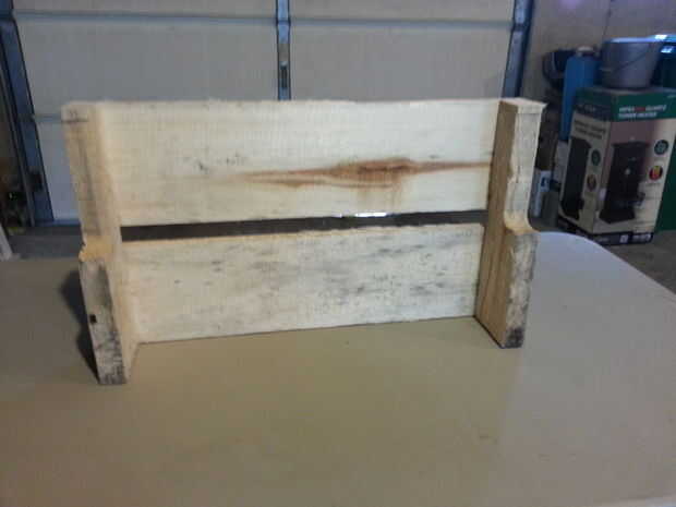Dependiendo del tamaño de su plataforma los tableros, corte la plataforma a la altura deseada. Algunas de las plataformas que hicimos 2 tableros y otros que hicimos 3. Si quieres un top, deberás ir bastante alto así que todavía puede conseguir las botellas en. Asegúrese de cortar el palet para que tengas el más grueso 2 x 4 en la parte inferior como se verá en las fotos. Se utilizó una sierra Sawzall y chop. Luego tienes que cortar la descarga de tablas en la base. Asegúrese de lijar todo abajo cuando termine corte! Utiliza una lijadora de mano.