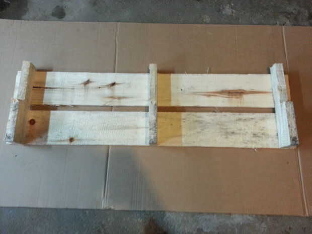 Hace aproximadamente un año, me dieron varias paletas industriales de la fuerza de 2x6s. Después de renunciar a tratar de separar las secciones largas, usé una sierra circular para cortar lo que considero el material utilizable. Me quedé con cuarenta
