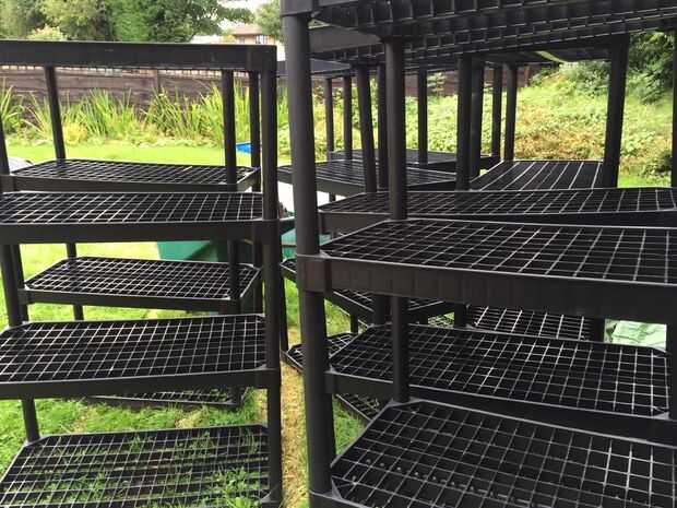 se trata de un estante del almacenaje diseñado para sostener mi reciclado madera, tuberías, conductos, escaleras, etc.. Había utilizado una pila de 2x4s que despojó de mi casa durante un proyecto de remodelación. Ver las imágenes adjuntas de las dime