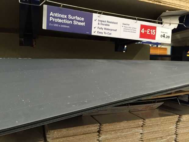 Originalmente pensé que cubre el exterior con madera contrachapada o incluso tablero de OSB, pero el costo fue demasiado alto... Luego en una expedición a mi Wickes local vi un material plástico similar al Correx. La chapa está diseñada para proteger el suelo durante obras de construcción. Es muy barato en alrededor de £4 por 8 pies por hoja de 4 pies. Este podría ser mi revestimiento impermeable, imputrescible.