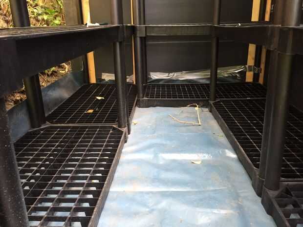 Tuve la suerte tener pavimentos ya en su lugar y así sólo les cubrió con una lámina de plástico resistente para actuar como una membrana a prueba de humedad. Mi esposa y yo montado todos los estantes y luego darse cuenta de que no tendríamos acceso al final, una vez que todo estaba en su lugar.
