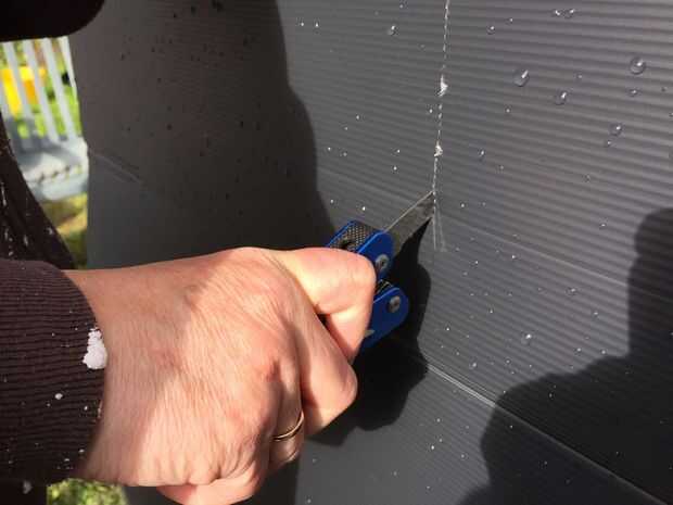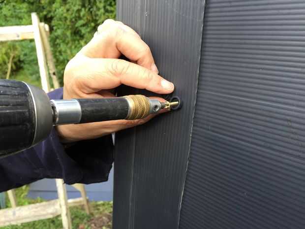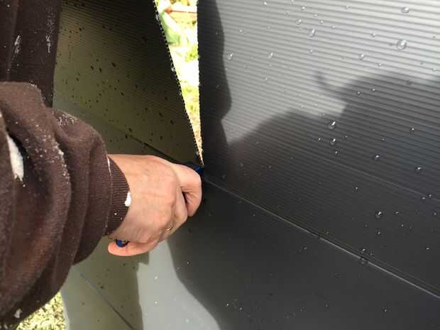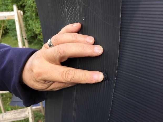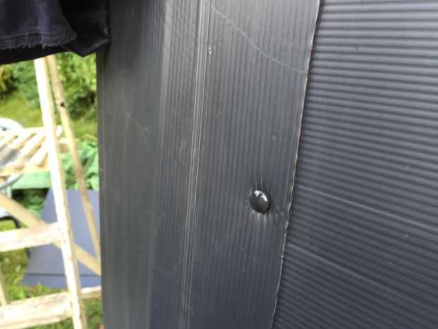 Todos los tornillos fueron insertados en tapitas de plástico para que sean impermeables. En los extremos se añadió otra capa vertical para que protección adicional, para cubrir los extremos abiertos y para que se vea mejor.