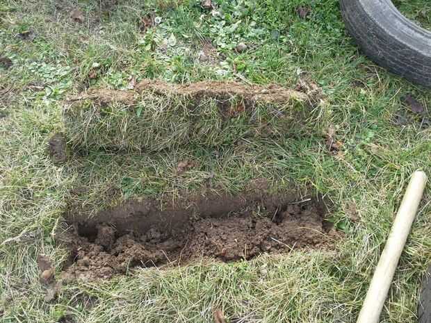 Quiero guardar la capa superior de tierra con hierba para que corte con cuidado.