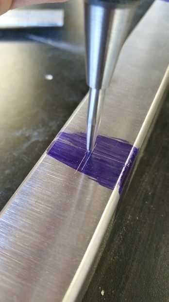 Utilizando una regla, escriba y marcador no permanente, marque el centro a mitad de camino en el lado con un punzón de metal (esto le ayudará más adelante del taladro). Hacer esto para los cuatro orificios. Repita para la otra tubería.