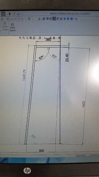Aquí está una imagen de ejemplo del plan de perfil lateral de la estantería (usando Solidworks).