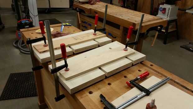 Cuando se encole sobre noche, siempre es mejor usar un inútil pedazo plano en la parte superior para que cuando se utilizan abrazaderas en ambos lados, aplique presión uniforme en toda la superficie en lugar de sólo dos puntos (que también puede dejar una abolladura poco atractivo en la pieza que está trabajando).