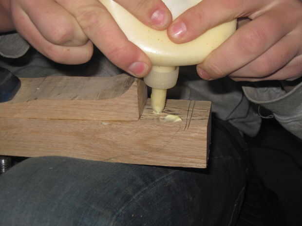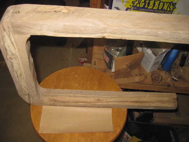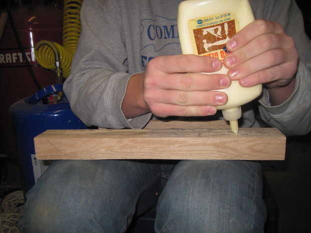 El primer paso en la fabricación de los brazos es unir la pieza superior. Aplique pegamento al exprimir hacia fuera en el tablero, luego frote toda la superficie con la mano (las fotos son por orden de qué hacer). Después se pegan es necesario sujetarlos juntos. Luego pegue los dos brazos a la derecha e izquierda del tablero curvo. Cable Bungy para arriba y deje que se seque durante la noche si es posible. Cuando esté seco, debe lijar las esquinas de los tableros tocando a nivelarse. Debe terminar como un tablero curvo liso (mirar última foto). Tras esto, añadir tornillos para reforzar el pegamento. Sería inteligente pretaladrar un agujero antes de atornillar nada, pero me impaciente por el final y sorprendentemente no crack cuando dejé de pretaladrar.