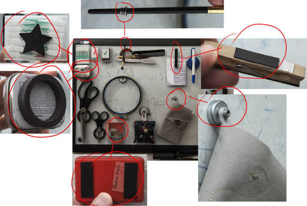 Metálicos tales como tijeras o cajas metálicas pueden colgar directamente en grandes imanes.