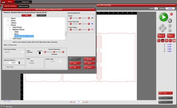 Abra el archivo de Illustrator. Vaya por delante e impresión de Illustrator para el programa de láser. Desde la pantalla de impresión en Illustrator, asegúrese de que "Setup" y "Preferencias" para acceder a la configuración del láser. Fijar la altura material (. 125") y elegir maderas de media General para el material. Asegúrese de darle aplicar, y una vez que esté en el cuadro de diálogo Imprimir, golpe "Imprimir"