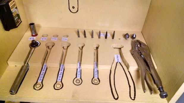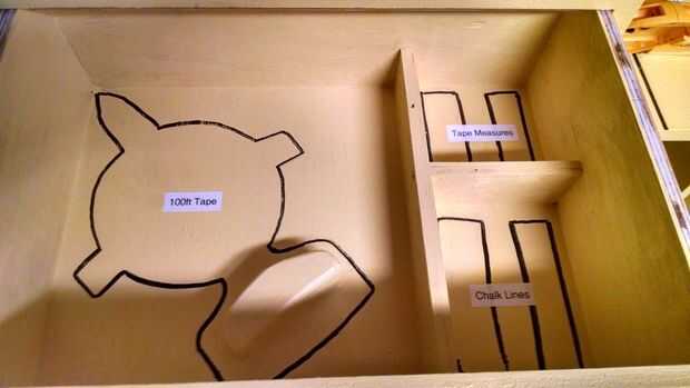 Una vez que todo se perfila utilice un fabricante de etiqueta para etiquetar todas las herramientas. Algunas de las herramientas más grandes son imprácticos para contorno una etiqueta tendría que ser suficiente. Algo que también podría funcionar es una ilustración o imagen de la herramienta de pegado en el cubbys.