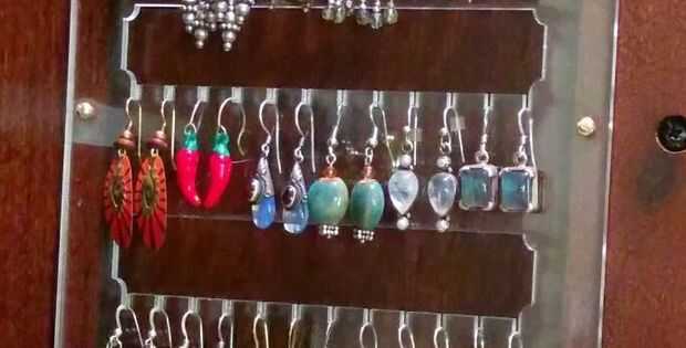 Las parrillas fueron cortadas de 1/8 acrílicos claro usando el cortador del laser en la tienda de tecnología. Yo estoy proporcionando el archivo CorelDraw por lo que puede hacer su propia. Sus parrillas son aproximadamente 18 x 6,75 pulgadas - no dude en modificar el diseño. A ella le gusta dangly pendientes, por lo que las filas son un poco más de 2 pulgadas de distancia.