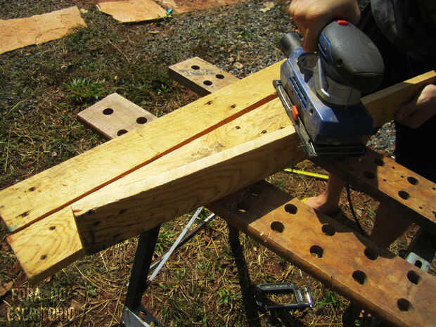 Los lados de la arena tan ligeramente la madera puede adherirse más a la otra.