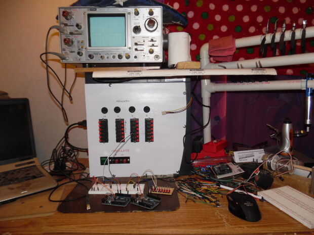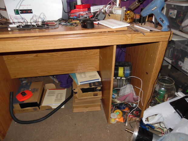 Algún día hablaré del interior de la computadora de escritorio que convierte en una fuente de alimentación del Banco. Por ahora esto es el Banco y todo es desastre. El organizador que hice aquí no limpieza mucho pero es un comienzo como dicen. En el cuadro muestra los cables debajo de la mesa donde una computadora va por lo general hay un estante que hay. Sólo se encuentra en el no asegurar los soportes de plástico 4. Tuve ese estante sentado en mi mesa VI trabajo Banco cuando esta foto fue tomada...