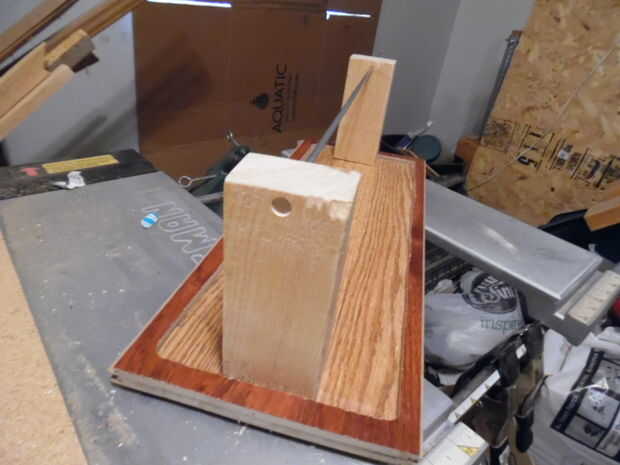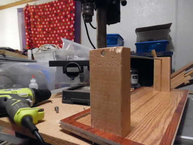Usé algunos pedazos de desecho de 2 X 4s que fueron cortados ya que el tamaño real es: 1.5 X 2.5 X 5.75. Pero hay uno en cada extremo del cajón. Apilar los soportes juntos y les sujeta juntos mientras que perforé un agujero para la varilla (3/8") en ellos. Esto fue hecha para asegurarse de que el agujero fue igualmente colocado en ambos soportes sin tener que medir muchísimas veces y espero que la varilla no enlazar en los soportes cuando se enrosque la varilla a través de los agujeros después de que los soportes están asegurados para el cajón.