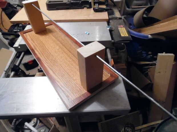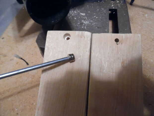 He utilizado un router forster broca para hacer el agujero para los imanes que me consiguió un buen ajuste de los imanes. Aunque ellos fueron cayendo hacia fuera de la manera más fácil entonces que esperaba. Entonces se coloca el soporte en el cajón donde debe ir y la varilla roscada y asegurado que todas encajan entre sí para probar la conexión. Lo hizo así que volver a montar todo esto boca abajo sobre el Banco y alineados los soportes de madera al centro del carril de la diapositiva.