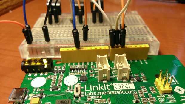 El circuito no es demasiado difícil de armar. Encima son dos diagramas que referencia al montar. Utilice cables de puenteo, protoboard, de MOSFET y LinkIt uno para montar el circuito.