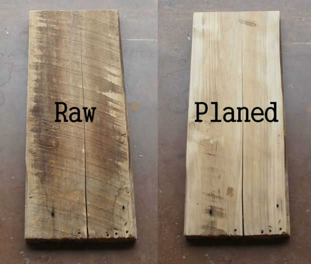 Todos los tableros eran ligeramente cepillados para traer las caras bastante lisas pero manteniendo los defectos presentes en la madera recuperada. Todos los bordes cuadrados para arriba en la Sierra de mesa y Mitre.