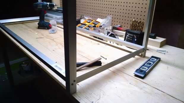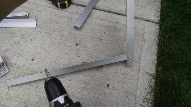 Comienzan a montar sus soportes laterales. La parte superior de la abrazadera en L horizontal mide 2" de la parte inferior del soporte vertical. Para obtener a través de dos piezas con un tornillo autorroscante, alinear juntos y perfore a través de la primera pieza. Cuando usted ha hecho una marca en la pieza de abajo con el tornillo de quitarlo y luego taladre a través de la segunda pieza en esa marca. Ahora usted debe tener un agujero en cada pieza que se alinean entre sí y no necesita cambiar para broca en el taladro.