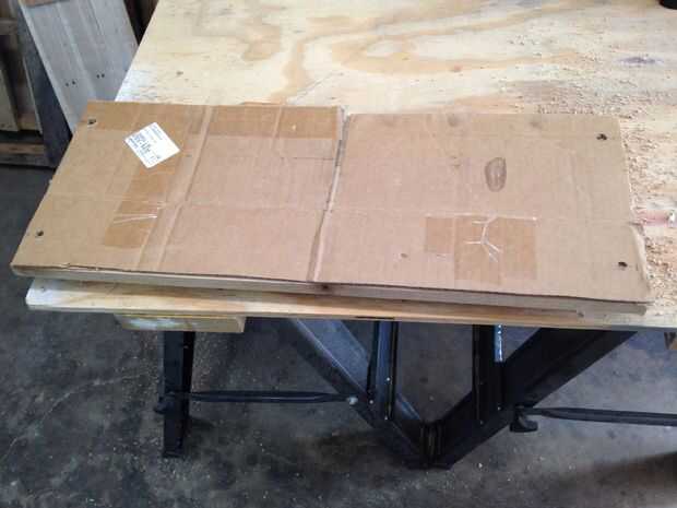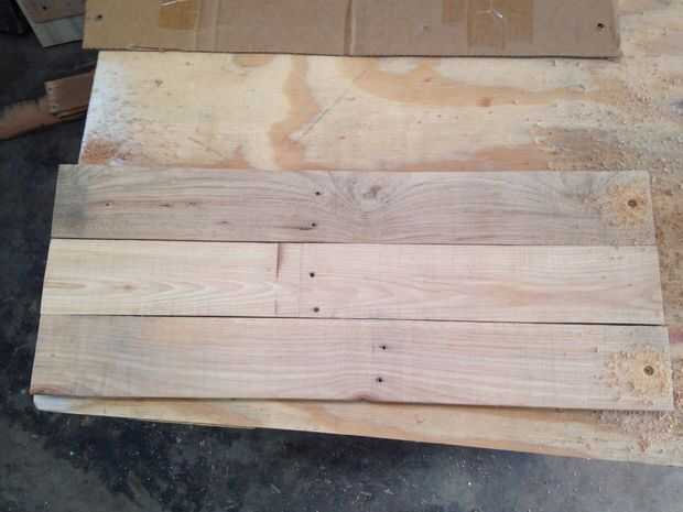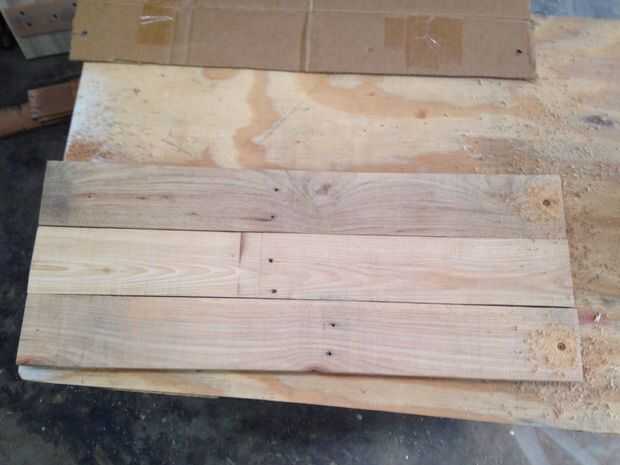 A continuación hice una plantilla de cartón para donde mis agujeros debían ser perforado para acomodar la varilla roscada. Es importante utilizar la plantilla porque los estantes no será perfectamente uniformes cuando confeccionada con tablas de palet.