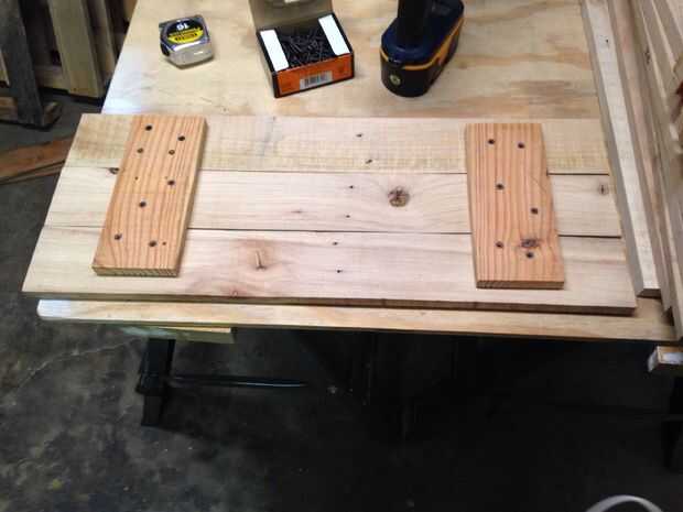 Presentado 3 tableros a la vez para mis estanterías; comprobación de catación y curvas en los tableros, les apareamiento juntos mejor que encajaría. Con eso hecho, reuní cada estante colocando un listón de 3" de cualquiera de los extremos con tornillos de 5-6 en cada uno.