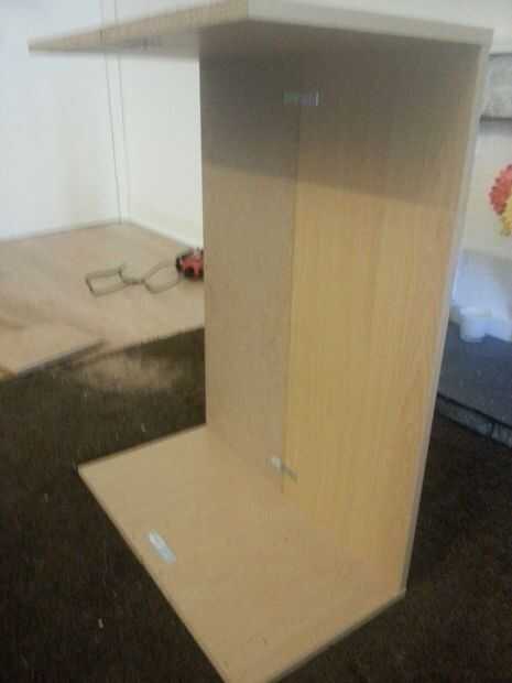 Quitado de la parte trasera de la librería y luego la parte superior y la parte inferior cortaron (utilizando una sierra de vaivén) a la misma "altura"