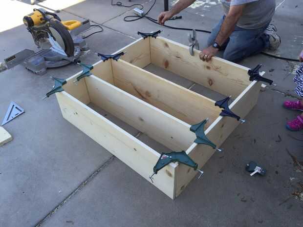 Todos los cortes fueron dentro de una tolerancia razonablemente exacta. Utilizamos dos sistemas de las abrazaderas de esquina para sujetar todo mientras nos presenta. Una abrazadera de apriete se utilizó para colocar el refuerzo contra el frente del estante inferior. Una vez que pudimos ver en nudos y grano resultaban los consejos estarían, hicimos cambios a nudos en la espalda y marcas en la parte inferior de estantes. Después de finalizar, marcamos caras para agujeros de ocultación.